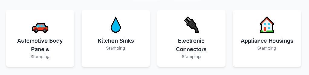 - High-volume manufacturing of identical parts, such as automotive body panels, electronic connectors, and kitchen appliance components. The speed and repeatability of stamping presses are unmatched for mass production.